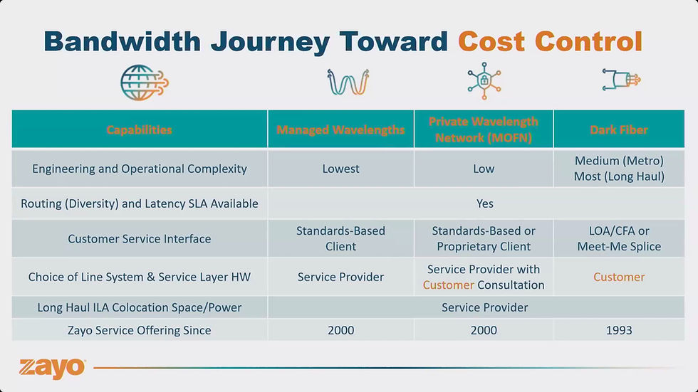 身為關鍵設施提供者,Zayo 分享了客戶從管理波長轉向暗光纖(Dark Fiber)的趨勢: